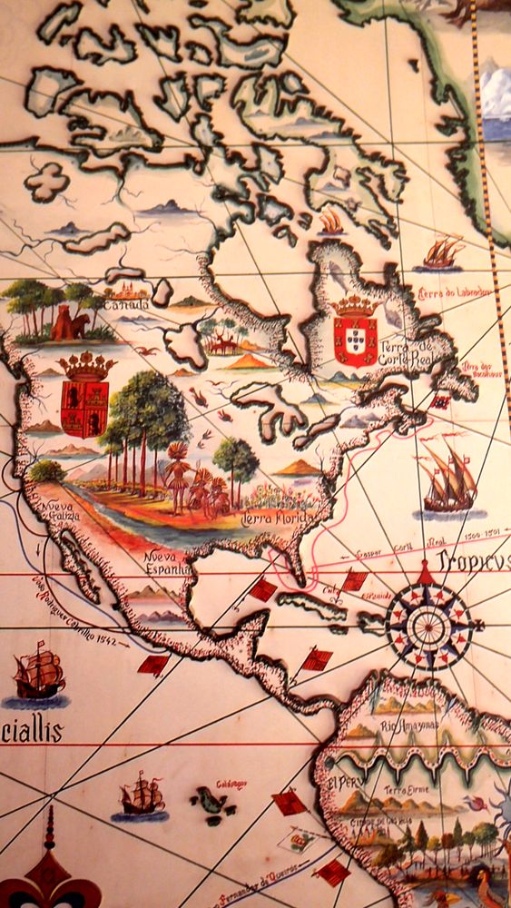 - Segundo, aparece uma viagem de Gaspar Corte Real (1500-01) que, partindo dos Açores, terá rodeado toda a península da Florida, basicamente até ao Mississipi (~Nova Orleães), para depois seguir sempre junto à costa da América do Norte até Cape Breton, onde aparece uma bandeira nacional. Nada disto foi alguma vez reportado... que eu saiba!